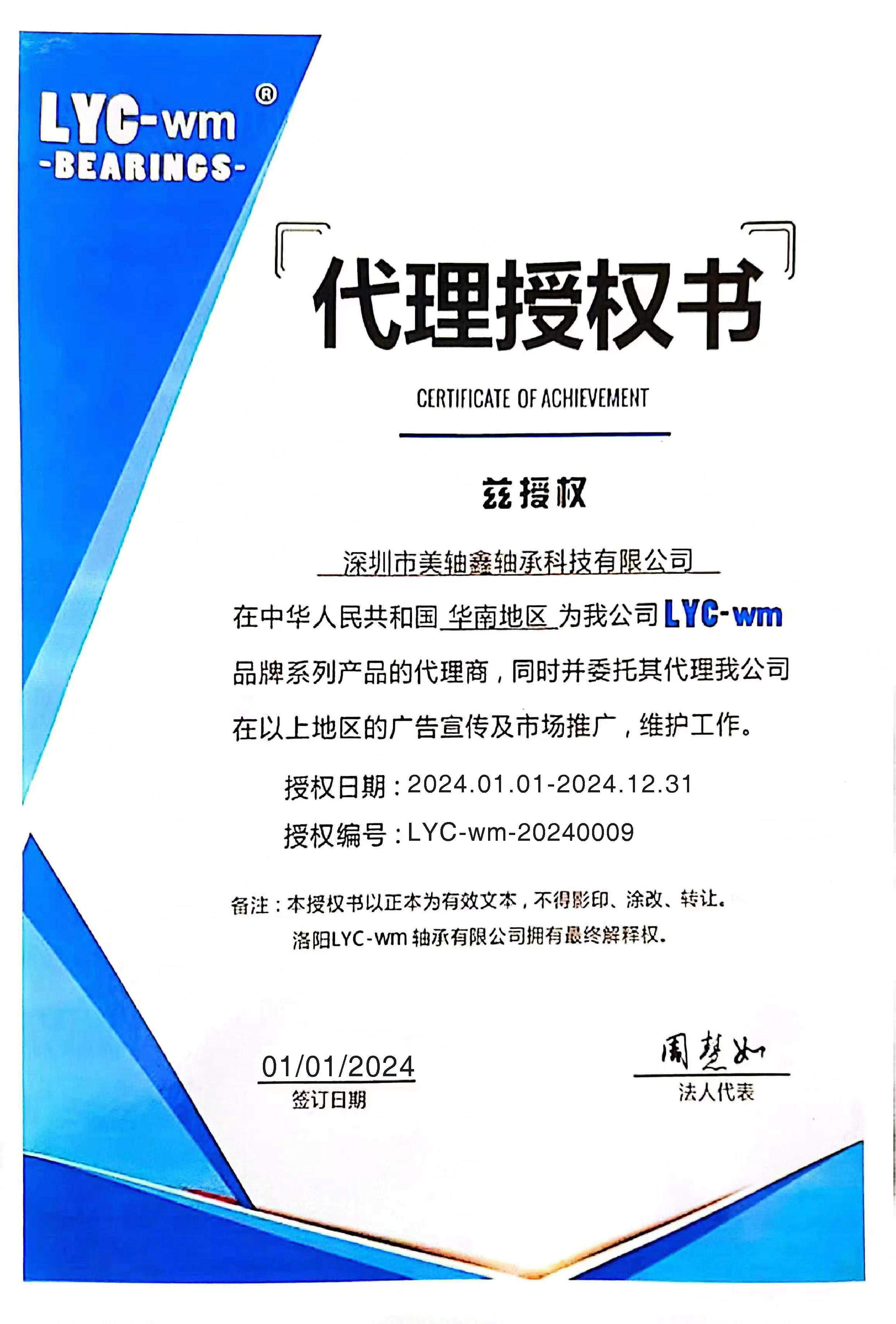 2024年LYC-WM授權(quán)證書