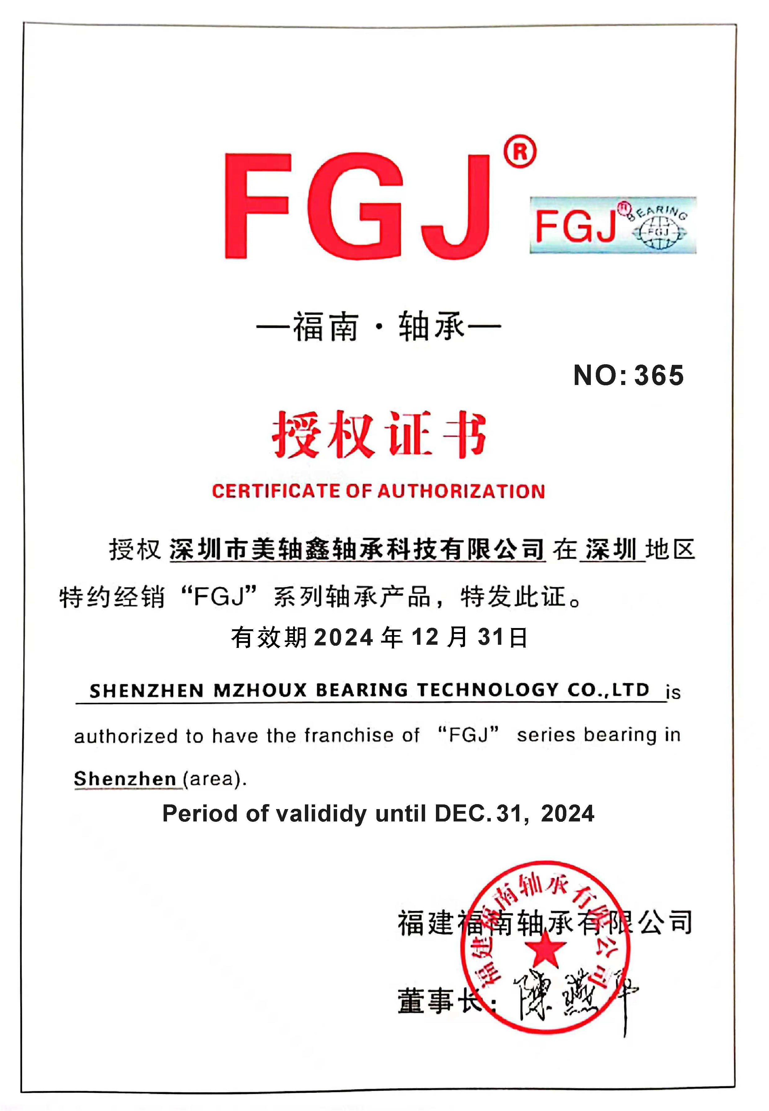 2024年FGJ授權(quán)證書