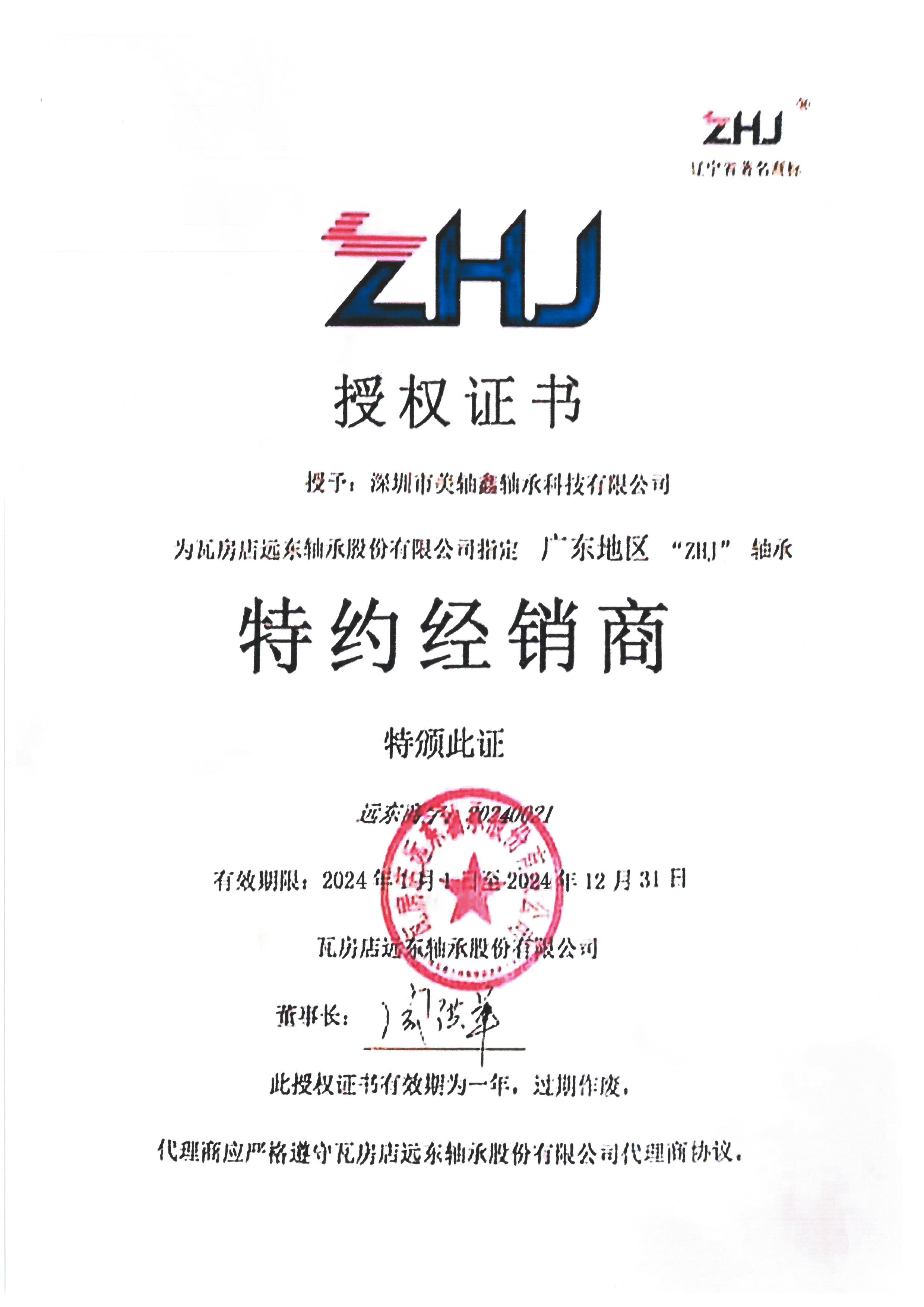 2024年ZHJ授權(quán)證